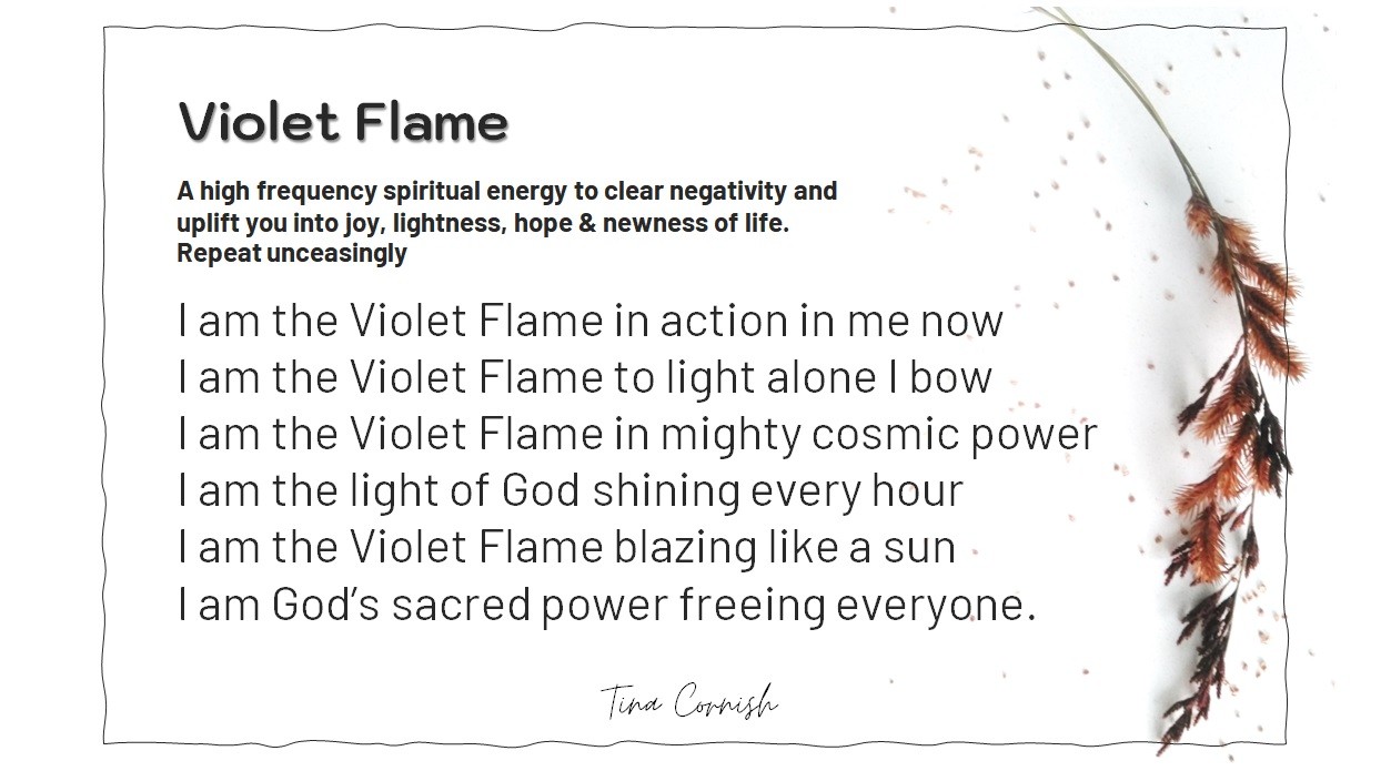 The violet flame is a high frequency spiritual energy that can transmute (transform) negative energy and karma into positive energy.